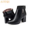 Women Ankle Boots GenuineLeather Women's Fashion Boots Red Pointed Rhinestone High-heeled Winter Wedding Boot