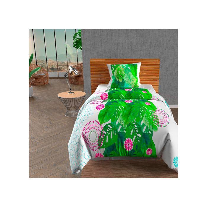 Parure housse de couette 140x200 cm en coton 57 Fils TAHITI blanc, par Soleil d'ocre