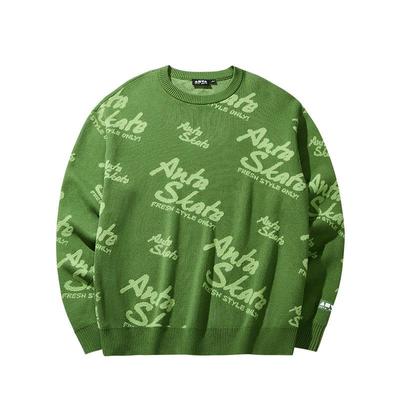 Anta All Over Print Letter Crew Neck Pullover Long Sleeve Knit Sweater Unisex Sweater Starry-Green Paper-White 172348703-3