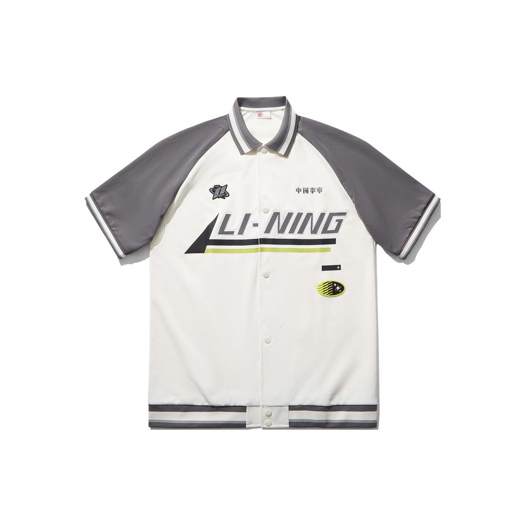 Li Ning Reignite Series Color Block Square Neck Single-Breasted Short Sleeve T-Shirt Men Tops Off-White Smoke-Gray AYSU001-2