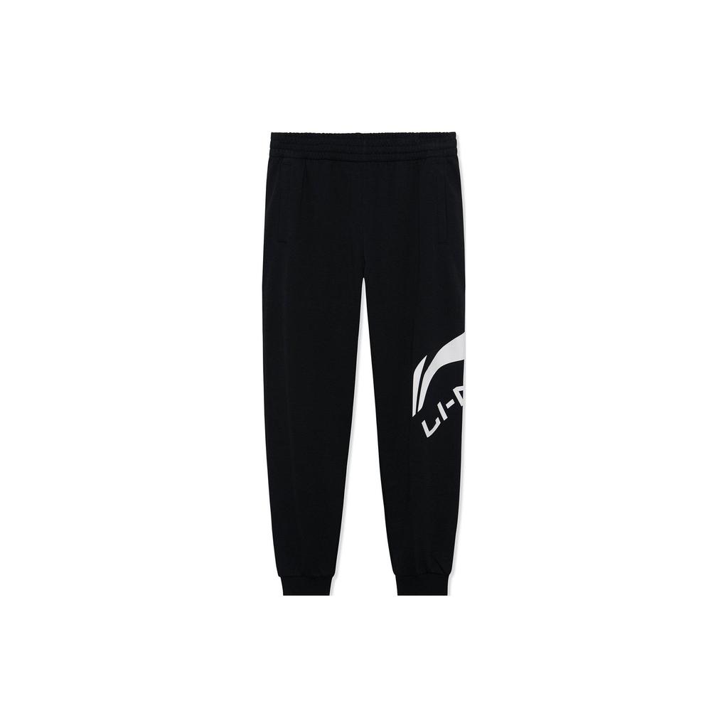 Li Ning Logo Print Loose Knit Sports Long Pants Men Bottoms Black AKLRF65-4