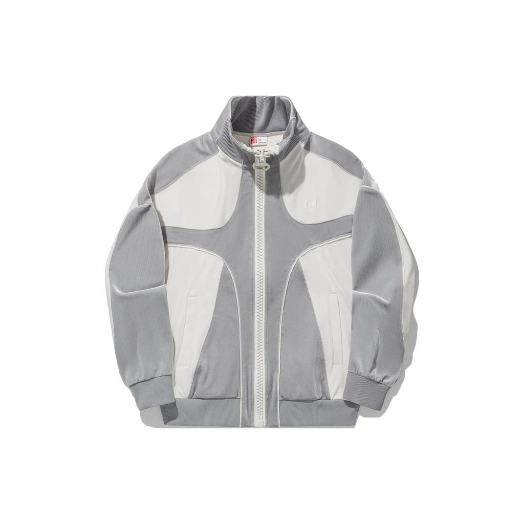 Li Ning Color Block Stand Collar Loose Knit Jacket Women Jacket Off-White Extreme-Gray AFDU268-3