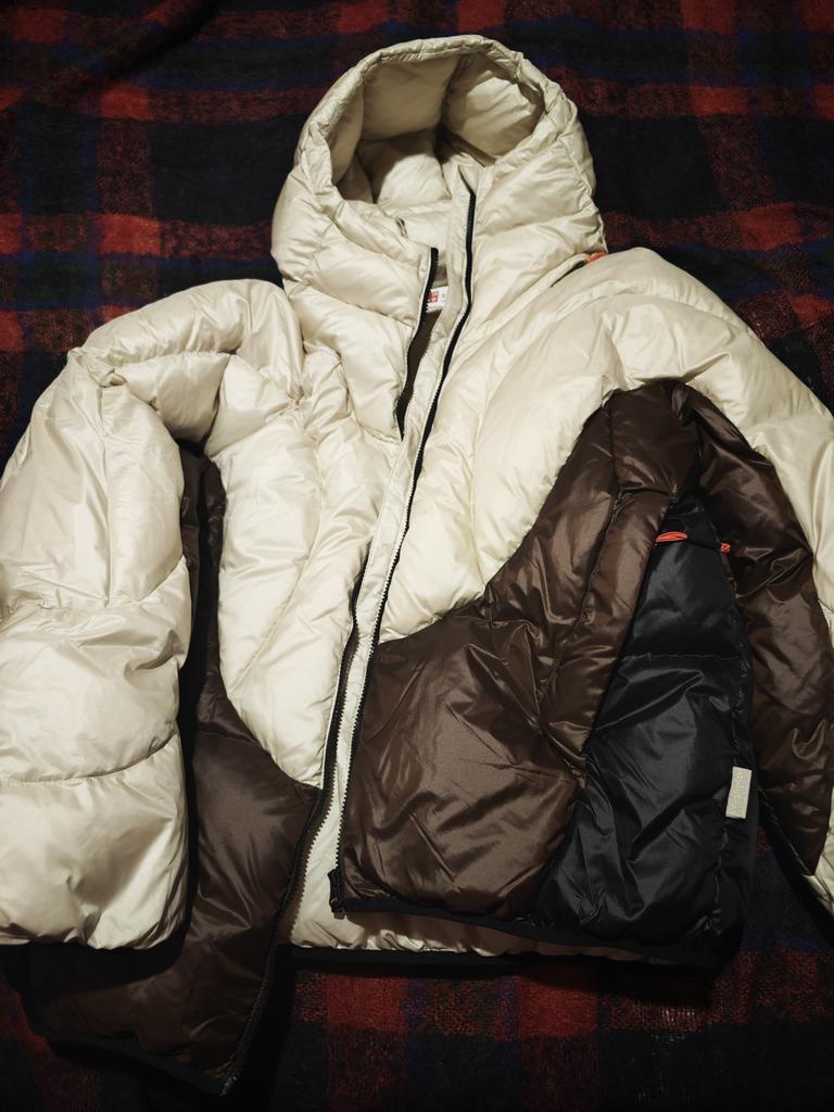 Li Ning Color Block Zipper Hooded Down Jacket Unisex Outerwear Oatmeal-Gray AYMT035-4