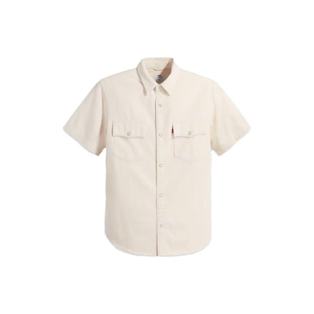 Levis Solid Color Square Neck Button Pocket Short Sleeve Shirt Men Shirts Off-White A5722-0004