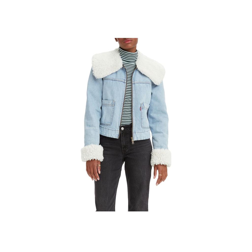 Levis Frayed Collar Oversized Pocket Solid Denim Jacket Women Jackets Sky-Blue A3487-0002