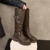Winter Women Knee High Boots Fashion Belt Buckle Knight Long Booties Designer Square Heels Botas De Mujer