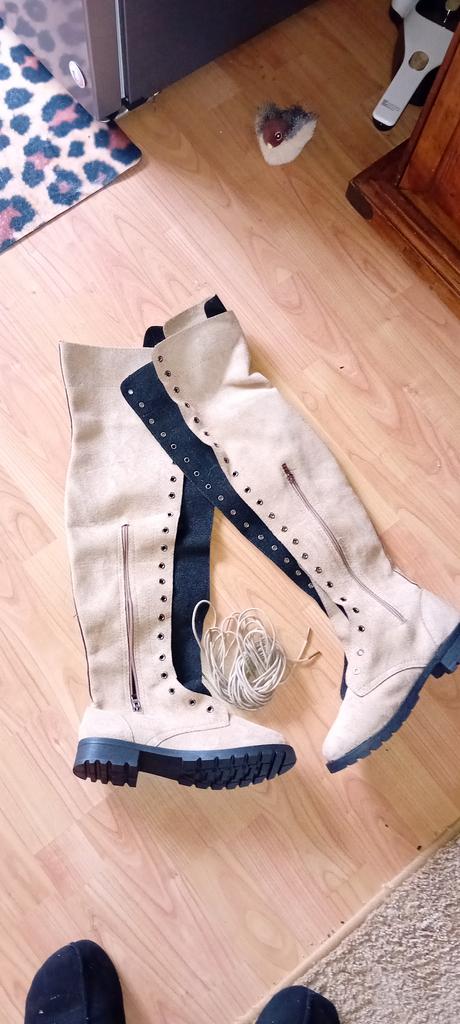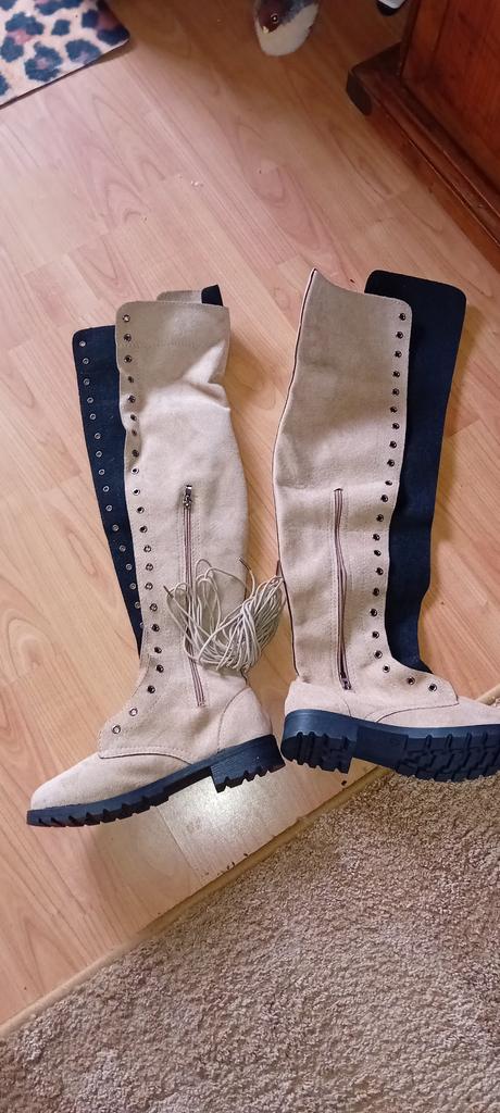 Cow Suede Over The Knee Modern Boots Square Heel Winter Ladies Shoes Hot Sale Lace-up Round Toe Low Heel Women's Boots