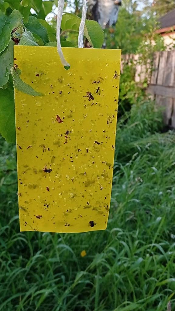 Hung on fruit trees from aphids, in greenhouses Very sticky, everything sticks.