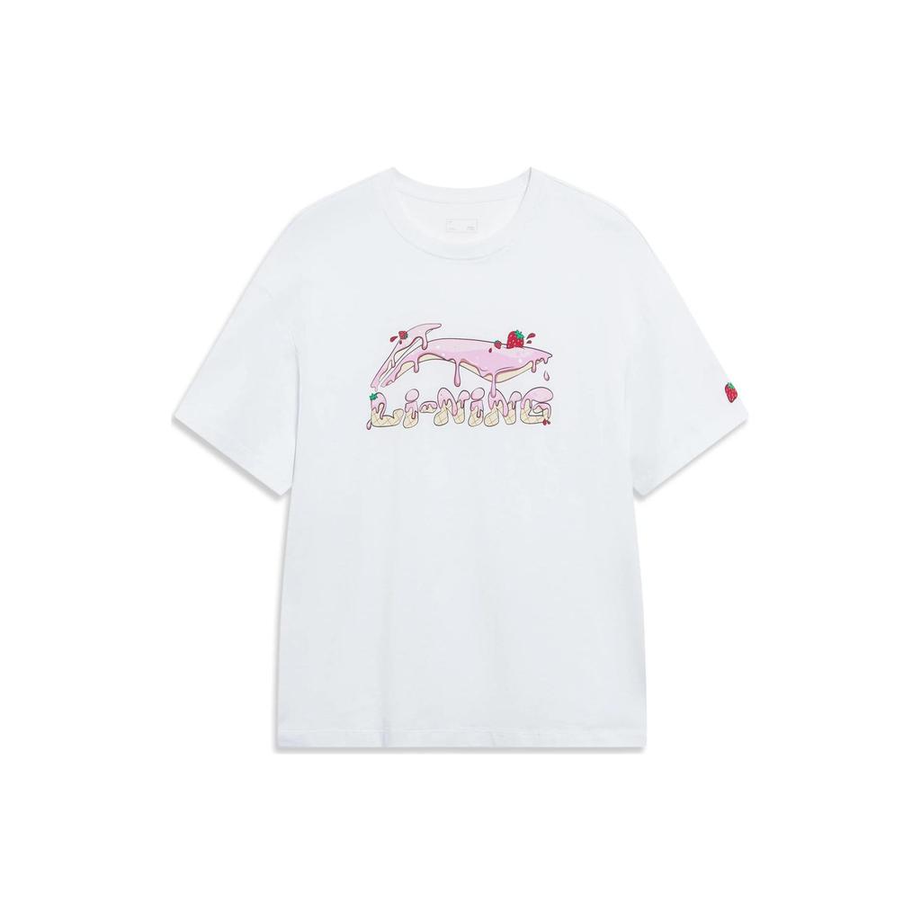 Li Ning Cartoon Logo Print Round Neck Short Sleeve T-Shirt Women Tops White AHST564-1