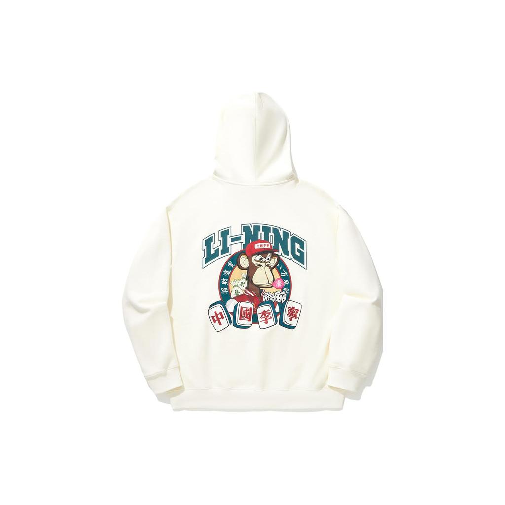 Li Ning Reignite Series Boring Ape Trend Sports Club New Year Limited Loose Pullover Hoodie Unisex Hoodie Off-White AWDU909-1