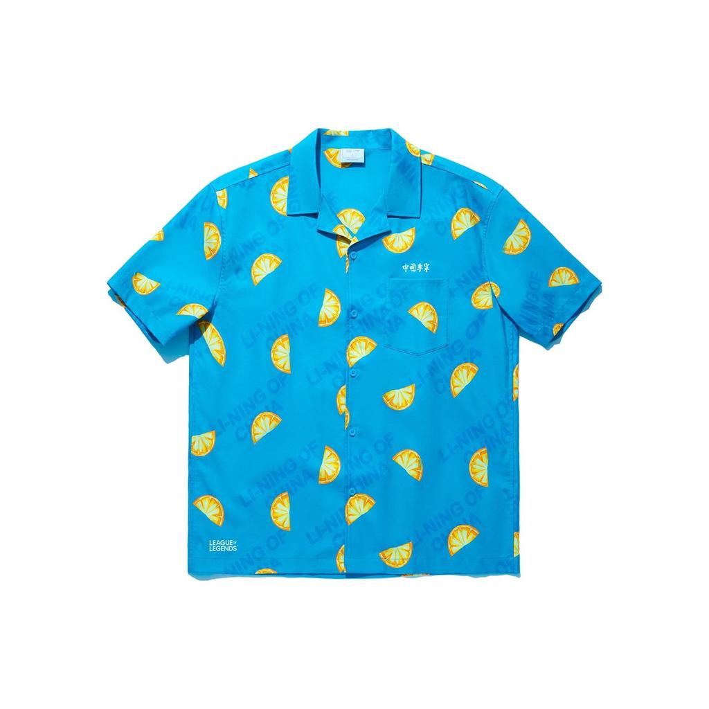 Li Ning X League Of Legends Pool Party Collaboration Fruit Print Casual Short Sleeve Shirt Unisex Shirts Bright-Blue ASHT503-2