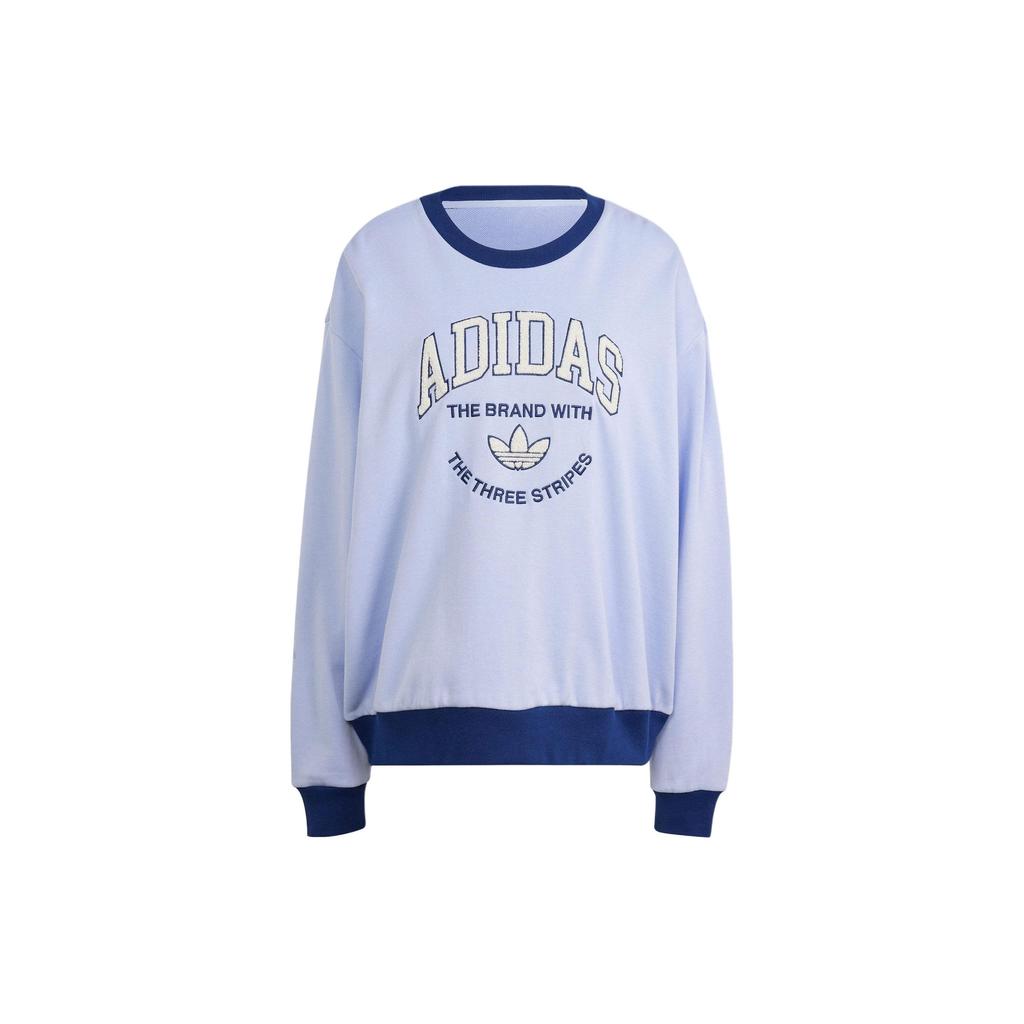 Adidas Originals Vrct Letter Logo Embroidered Loose Fit Crew Neck Long Sleeve Sweatshirt Women Sweatshirt Blue IT4271