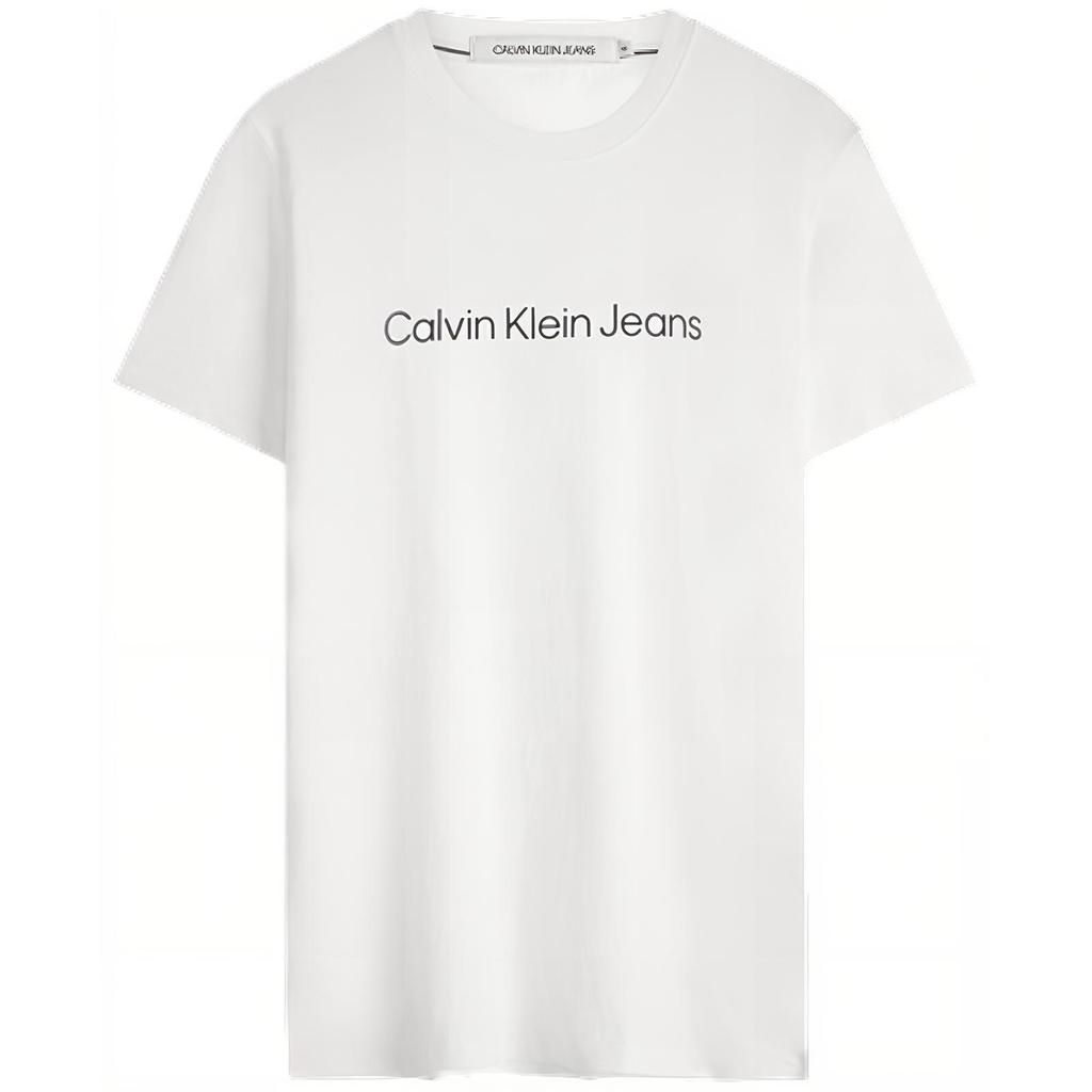 Calvin Klein Minimalist Classic Printed Cotton Commuter Short Sleeve T-Shirt Men Tops White J323261-YAF