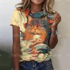 Top Women Fashion Woman Blouse 2024 3d Japanese Style Cat Print T-Shirts O-Neck Short Sleeve Tees Female Clothing Y2k T Shirts