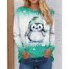 Autumn Winter Penguin Pattern Women T-Shirts Long Sleeve 3D Printed Christmas Style Street Ladies T Shirt 3XL Plus Size Tops