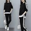 Ladies Stripe Crop Top Hoodie Set 2pcs Long Sleeve Loungewear Suit Tracksuits Sweatshirt
