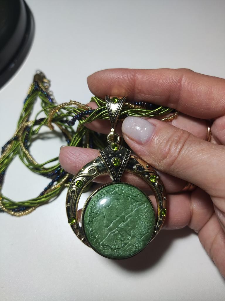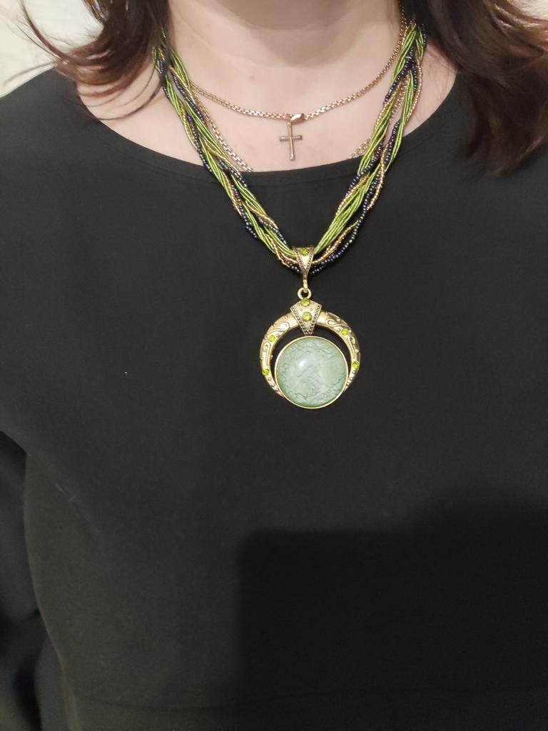 I ordered two pendants, green and black, for different outfits. The green one is just perfect, but something clearly went wrong with the black one It feels like this decoration was taken from an enemy, and they fought with it ))) Crooked, torn, all the black beads are defective, the connecting threads are short and the melted joints are all on the outside. A sad sight. The black decoration is for throwing away...