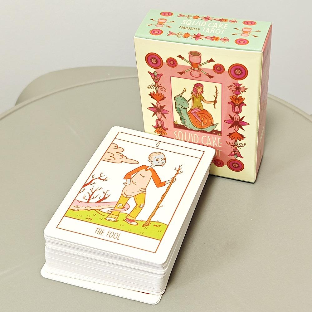 Squid Cake Tarot 9*6.5cm 78 Card Deck with Knights Riding Creatures, Quirky Faces and A Delicious Colour Palette