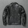 Chinese Size Real Cowhide Coat Genuine Leather Clothes Men's Motorcycle Skull Motorcycle Riding Jacket Autumn