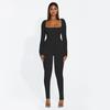 European and American Spring and Autumn Women's Long Sleeved Square Neck Slim Fit Solid Color Base and Hip Lifting Jumpsuit