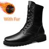 FashionClassic Motorcycle Boots Men High Quality Genuine Leather Ankle Boots High Top Warm Plush Fur Winter Footwear Leisure Walk Shoes