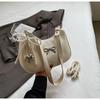 Chain Zipper Pu Popular Shoulder Bag Sewing Thread Solid Color Bow Fashion Crossbody Bag Soft Versatile Women's Handbag