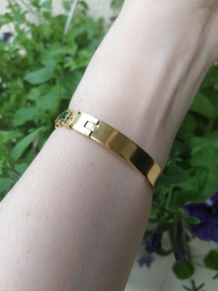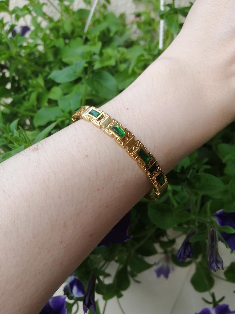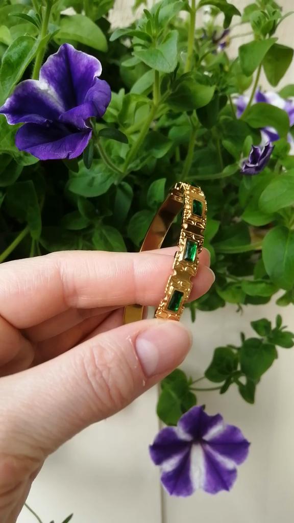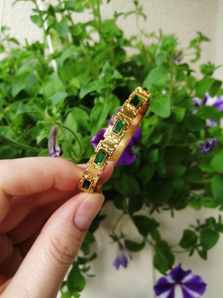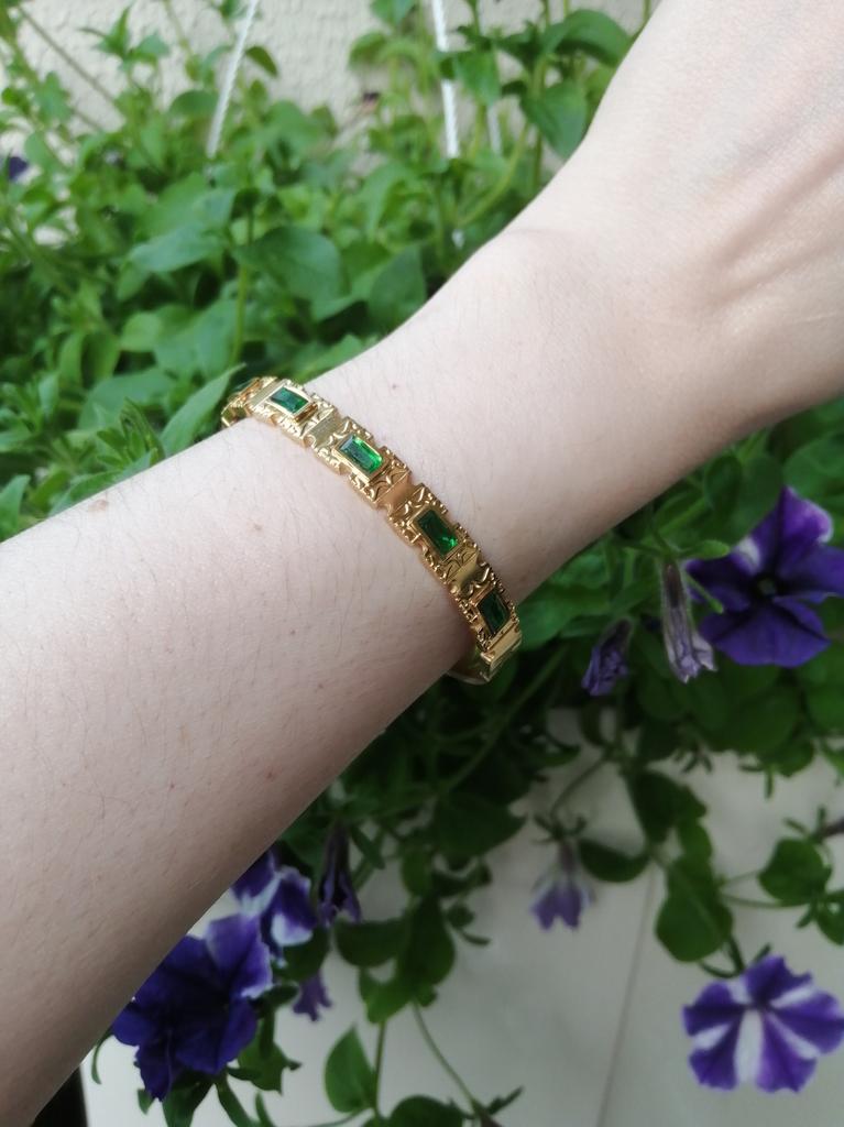 Vintage Green Zircon Rectangle Stainless Steel Bangles Bracelets For Women Statement Wrist Waterproof Jewelry Halloween Christmas Gift