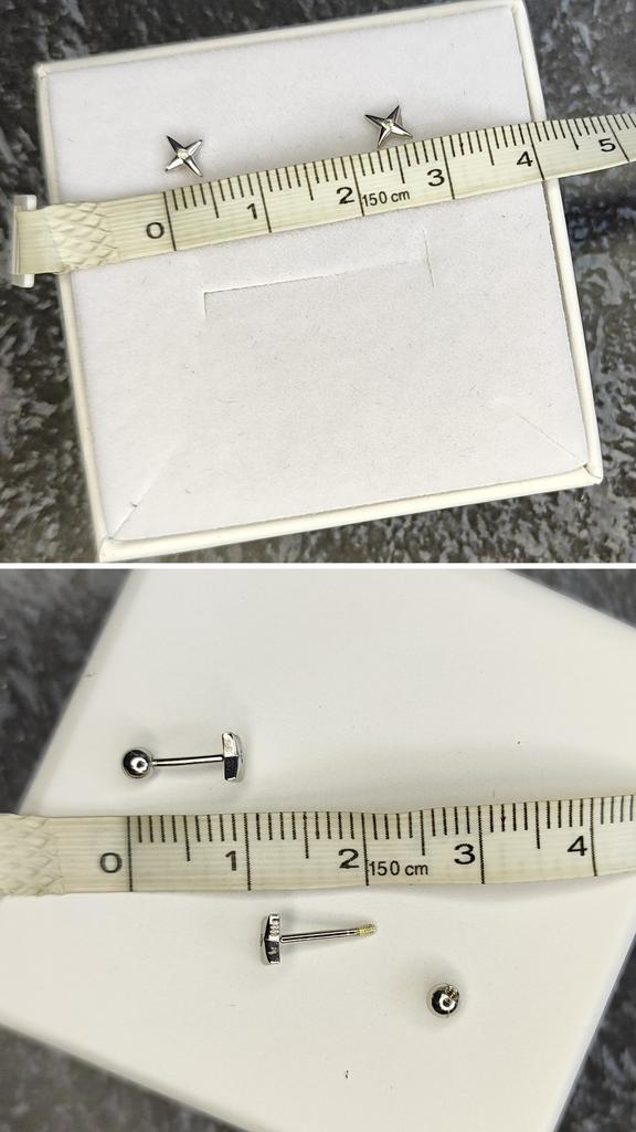 Small earrings, very beautiful, fit perfectly for additional piercings. Excellent appearance and quality, as with all products from this manufacturer