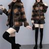 Lamb Wool Plaid Short Jacket Winter Cropped Petite Zipper Overcoat Women's Thick Regular Type Clothing