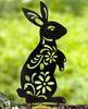 Animal Silhouette Bunny Rabbit Garden Stake - Yard Art for Lawn, Patio, and Home Decor with Floral Cutouts