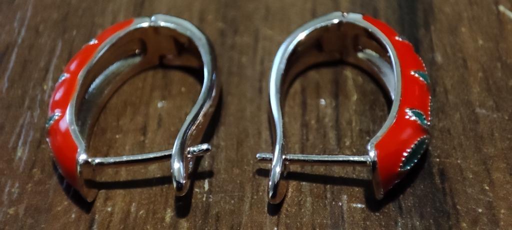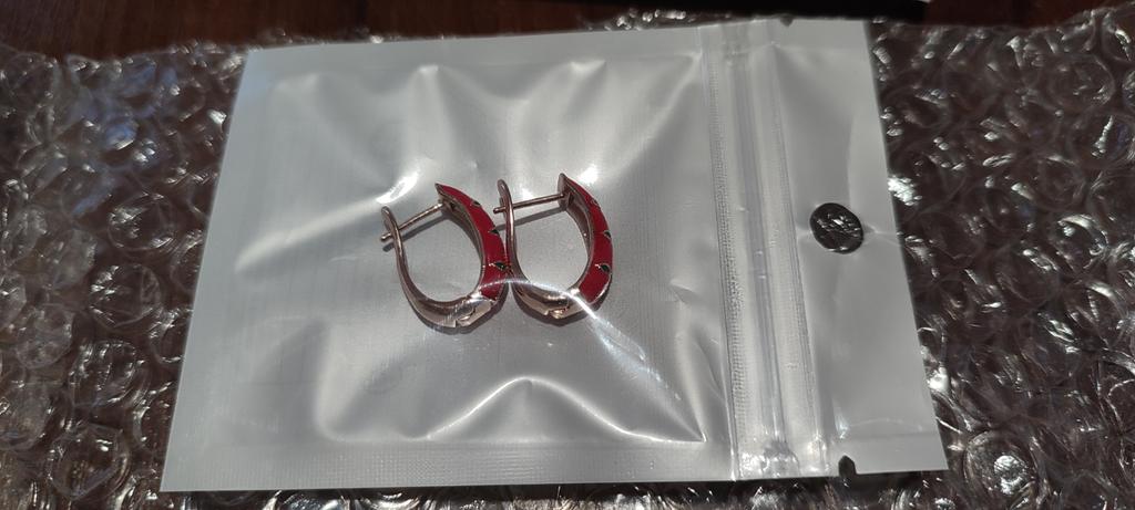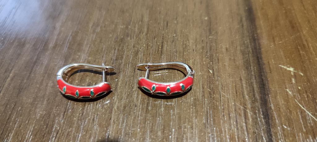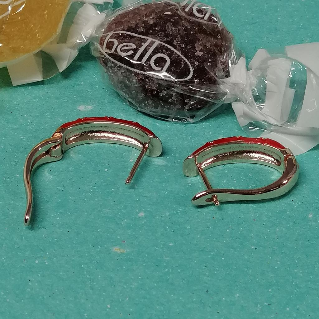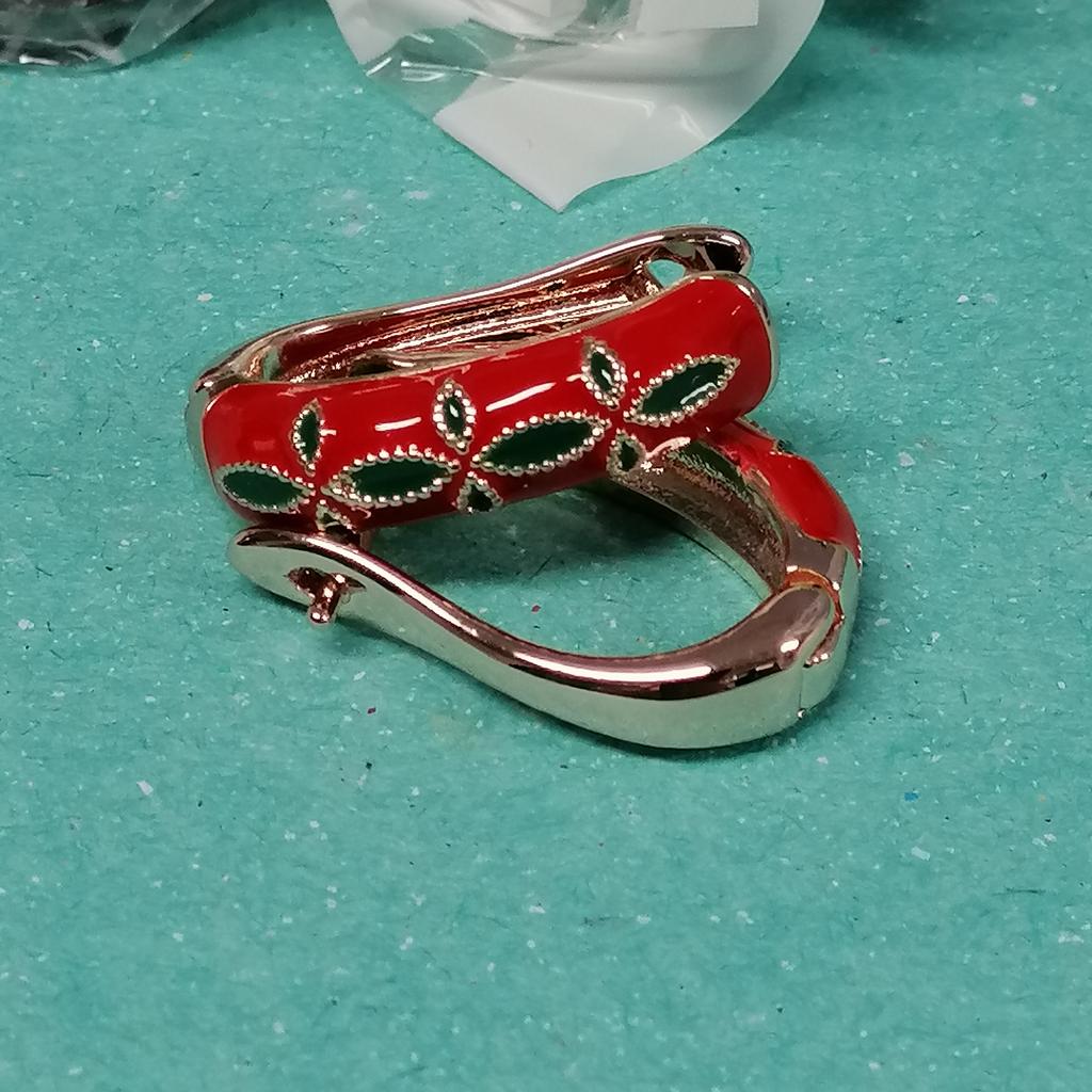 EARRINGS beautiful enamel earrings. Gold and green color with gold metal. Perfect for the Christmas holidays. Arrived in Italy with tracked shipping in 16 days in a combined package. Packing: zipped plastic bag. No defects found. Firm closure. Recommended purchase