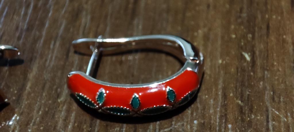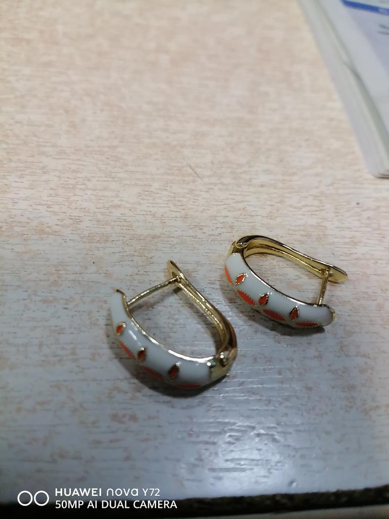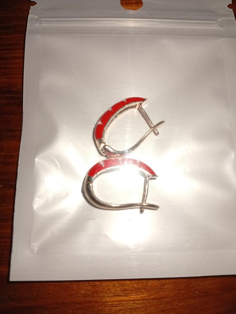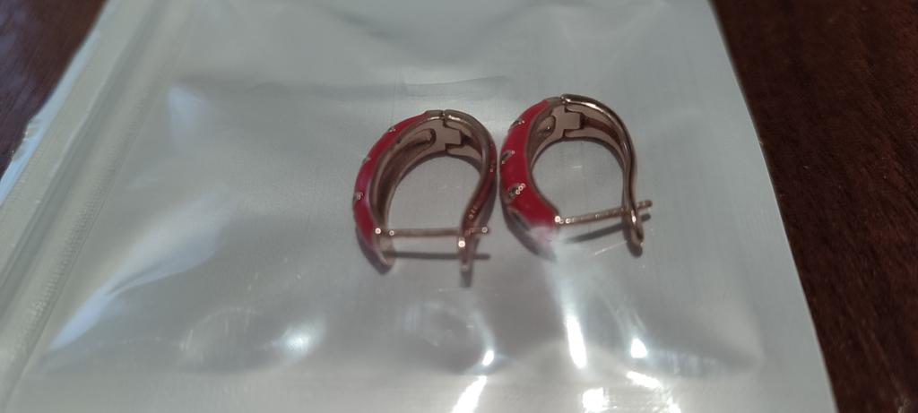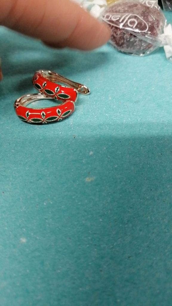 EARRINGS beautiful enamel earrings. Gold and green color with gold metal. Perfect for the Christmas holidays. Arrived in Italy with tracked shipping in 16 days in a combined package. Packing: zipped plastic bag. No defects found. Firm closure. Recommended purchase