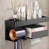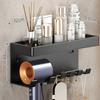 Bathroom Shelf Makeup Storage Organizer Carbon Steel Hair Dryer Holder Bathroom Accessories Wall Shelf with Cup Hook