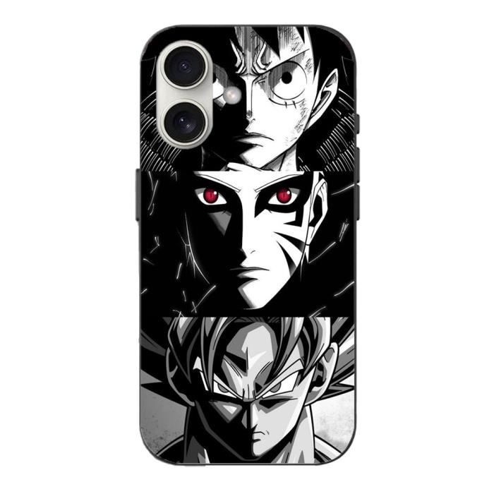Coque de téléphone - MANIACASE - Iphone 16 - Noir et blanc - Souple - Sangoku, Naruto, Luffy
