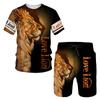 The King Lion 3d Print Men's Round Neck Tracksuit Sets Summer T-Shirt Shorts 2 Piece Set Oversized Pullover Fashion Men Clothing
