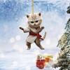 New Christmas Creative Kung Fu Cat Ornaments, Holiday Home Decor Acrylic Flat Pendant For Car Hanging, Christmas Tree Decoration