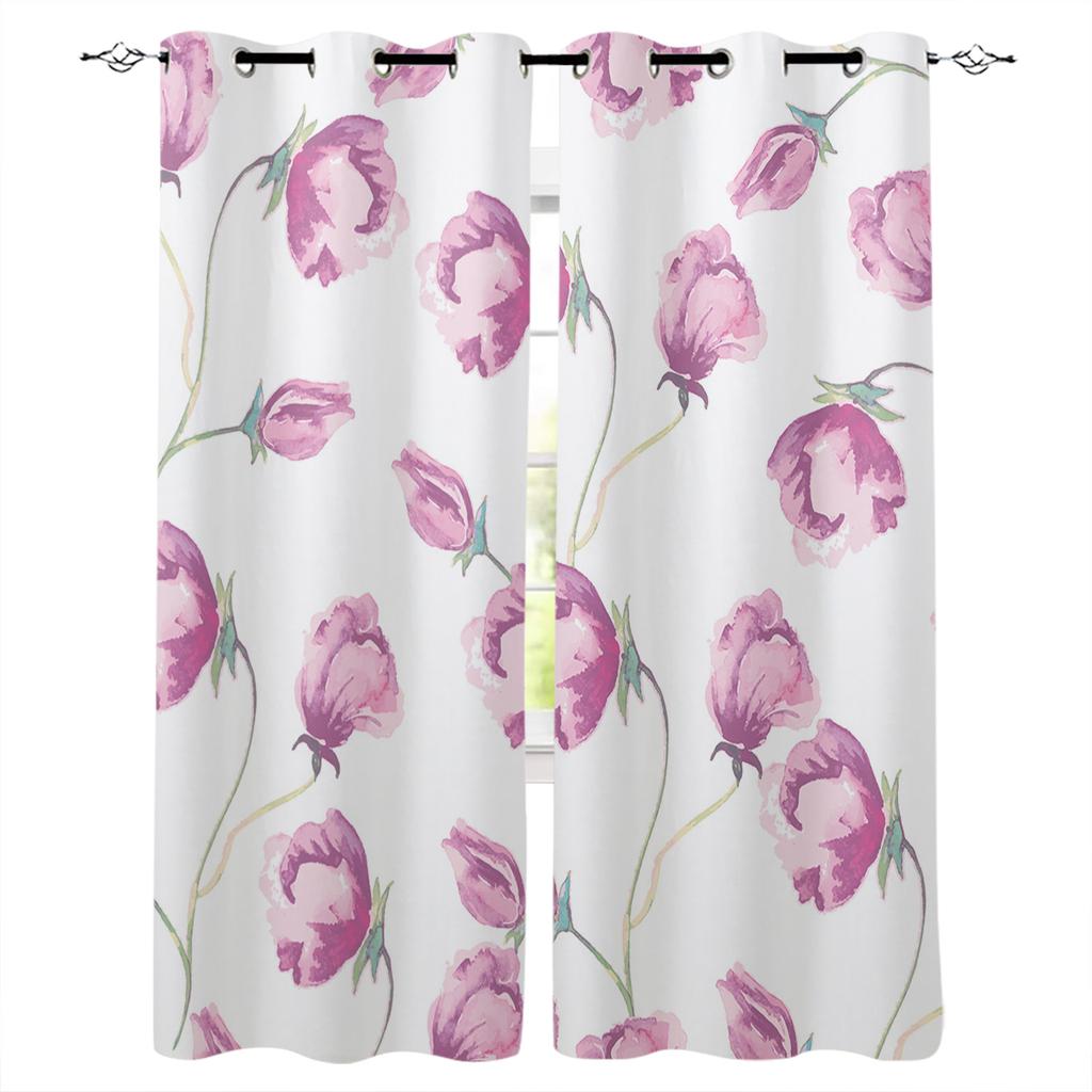 Pink Flower White Blackout Curtains For Living Room Bedroom Printed Window Treatment Drapes Home Decor