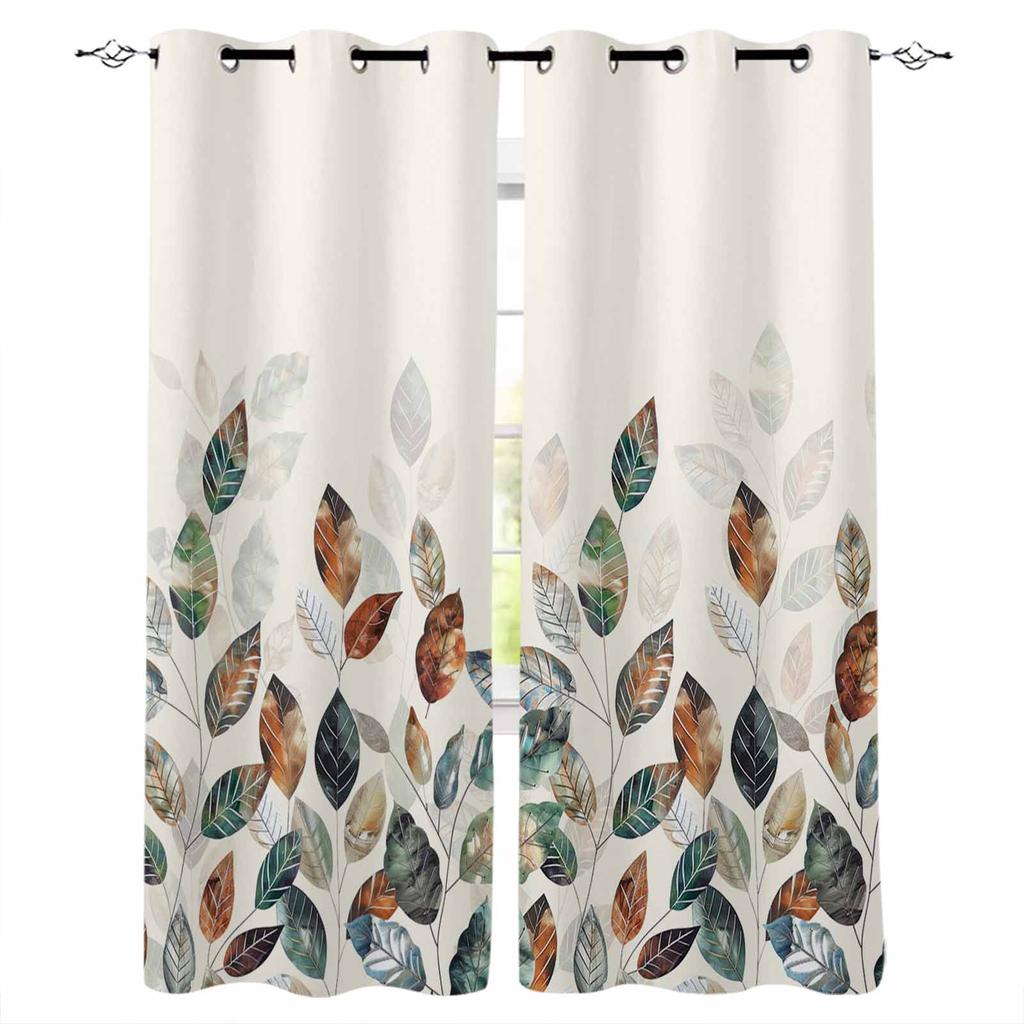 Autumn Thanksgiving Blue-Green Yellow Leaf Plants Blackout Curtains For Living Room Bedroom Window Treatment Drapes Home Decor