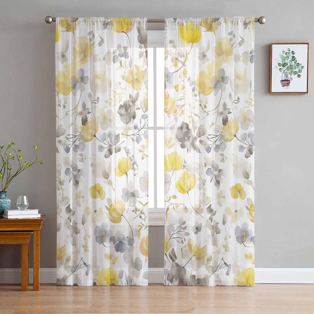 Yellow Flowering Plants Sheer Curtains Modern Gauze Curtain for Living Room Bedroom Voile Yarn Curtains