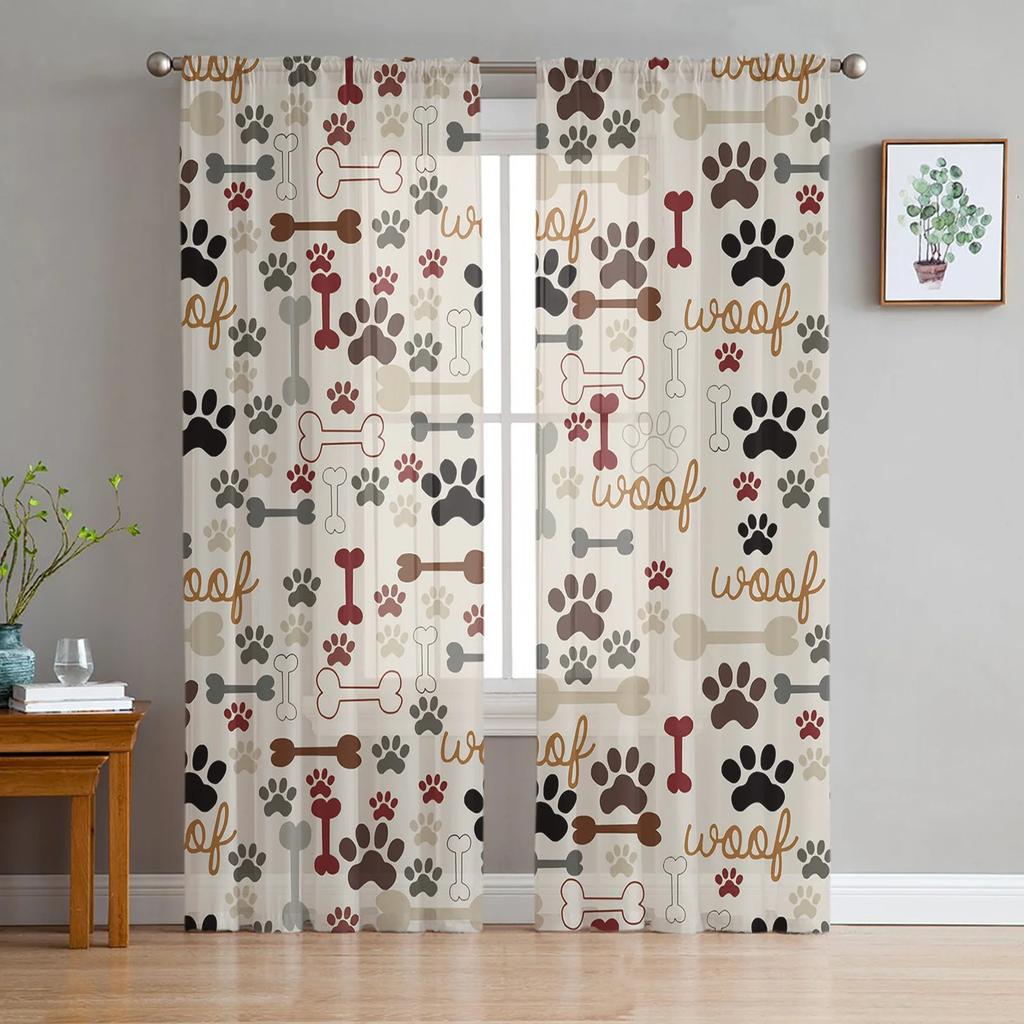 Cartoon Dog Footprints Bones Animals Sheer Curtains for Living Room Modern Voile Curtain Bedroom Tulle Curtains Window Drapes