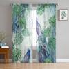 Peacock Feathers Green Tulle Sheer Window Curtains for Living Room Kitchen Children Bedroom Voile Hanging Curtain