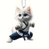 Set of 2 Kung Fu Cat Acrylic Hanging Ornaments - Versatile 2D Charms for Christmas Tree, Bag & Keychain Decor, Ideal Gift for Family and Friends