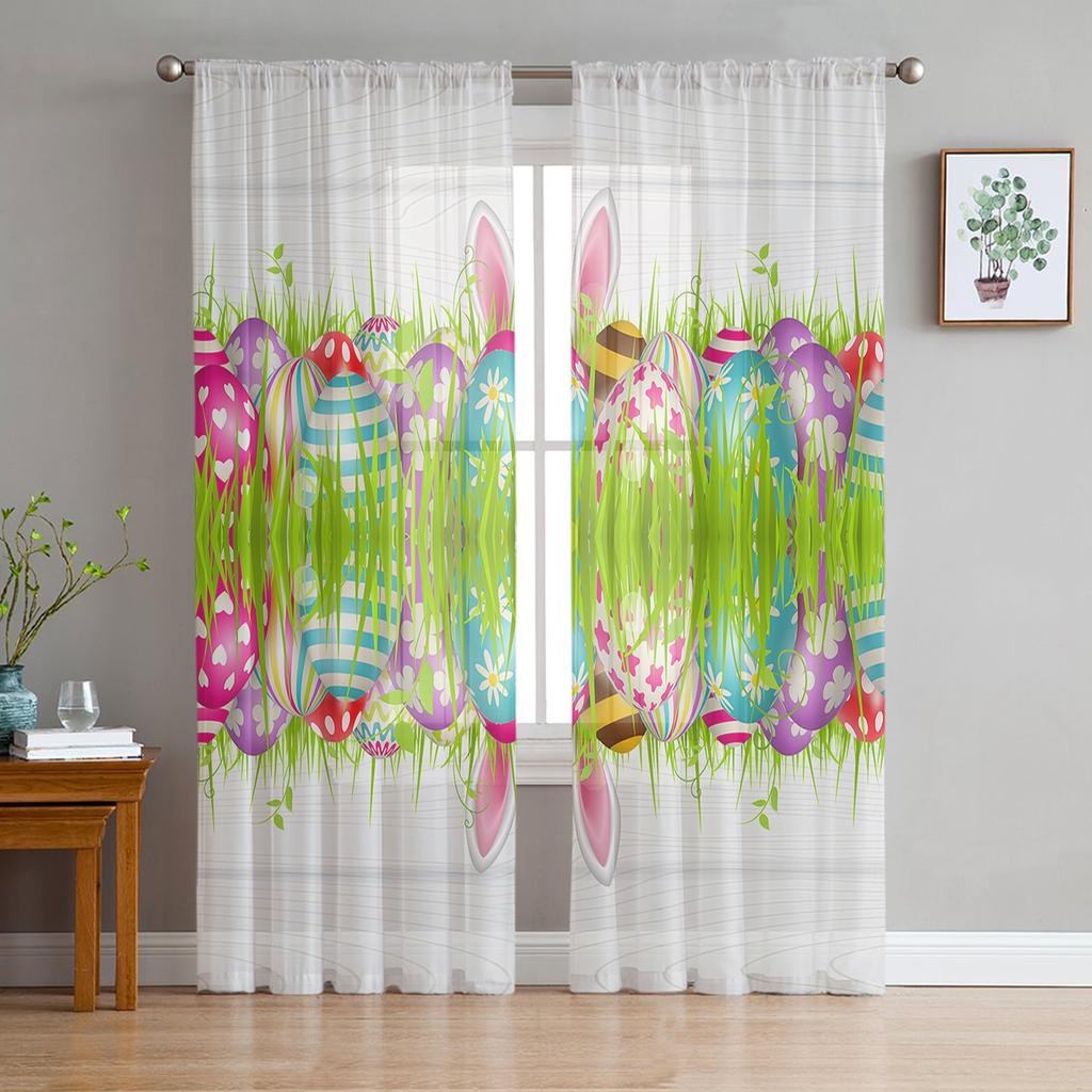 Easter Eggs Grass Rabbit Ears Sheer Tulle Window Curtains For Living Room Bedroom Kitchen Veiling Curtain Home Decoration
