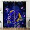 Blue Rose Butterfly High Shading Curtains Fashionable Printed Curtain for Bedroom Kitchen and Living Room Home Decor 2 Panels
