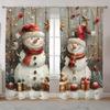 2pcs,Christmas Snowman,Red Cow Checkered Pattern With Rod Pocket Mount Digital Printed Curtains For Bedroom Living Room Kitchen
