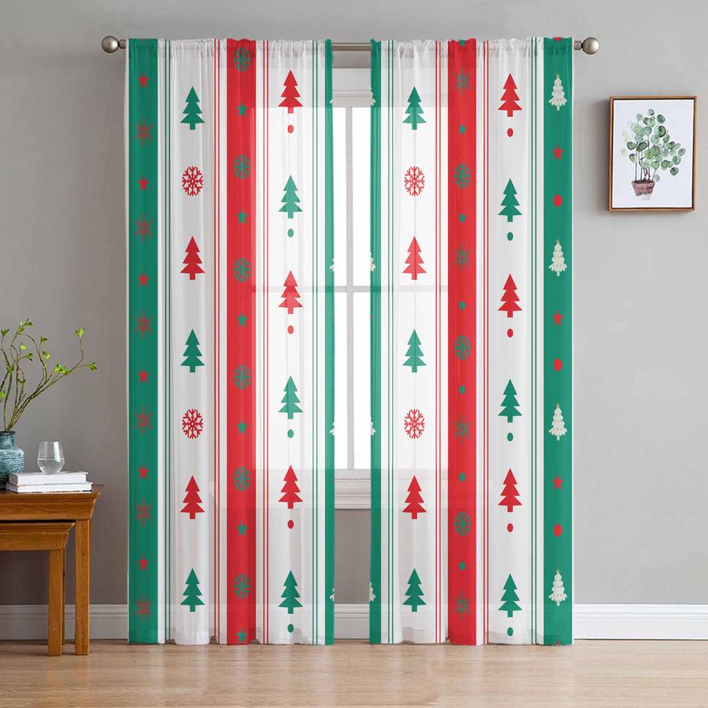 Christmas Tree Striped Snowflakes Sheer Curtains for Kids Bedroom Living Room Voile Window Curtains Tulle Drapes