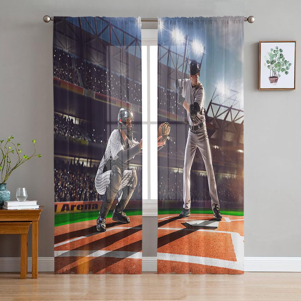 Sports Baseball Pitch Athlete Curtain For Living Room Transparent Tulle Curtains Window Sheer For The Bedroom Accessories Decor