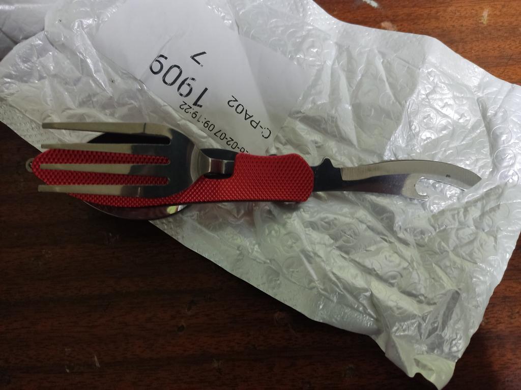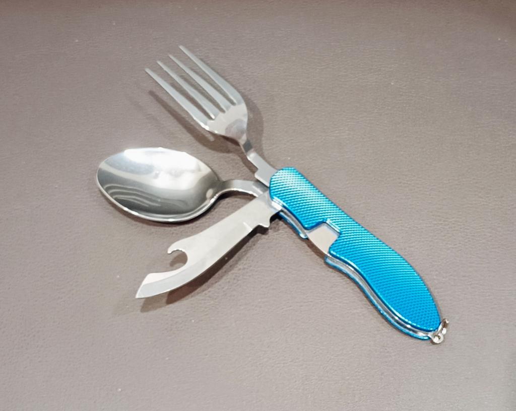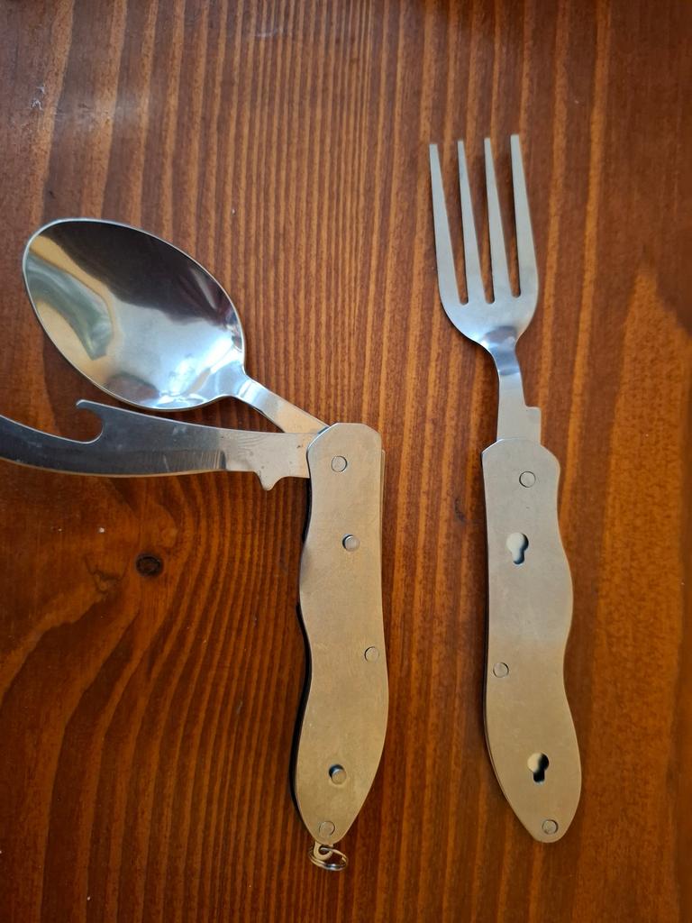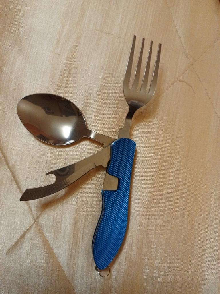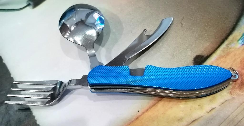 A very necessary device for the road and so: spoon, fork, bottle opener