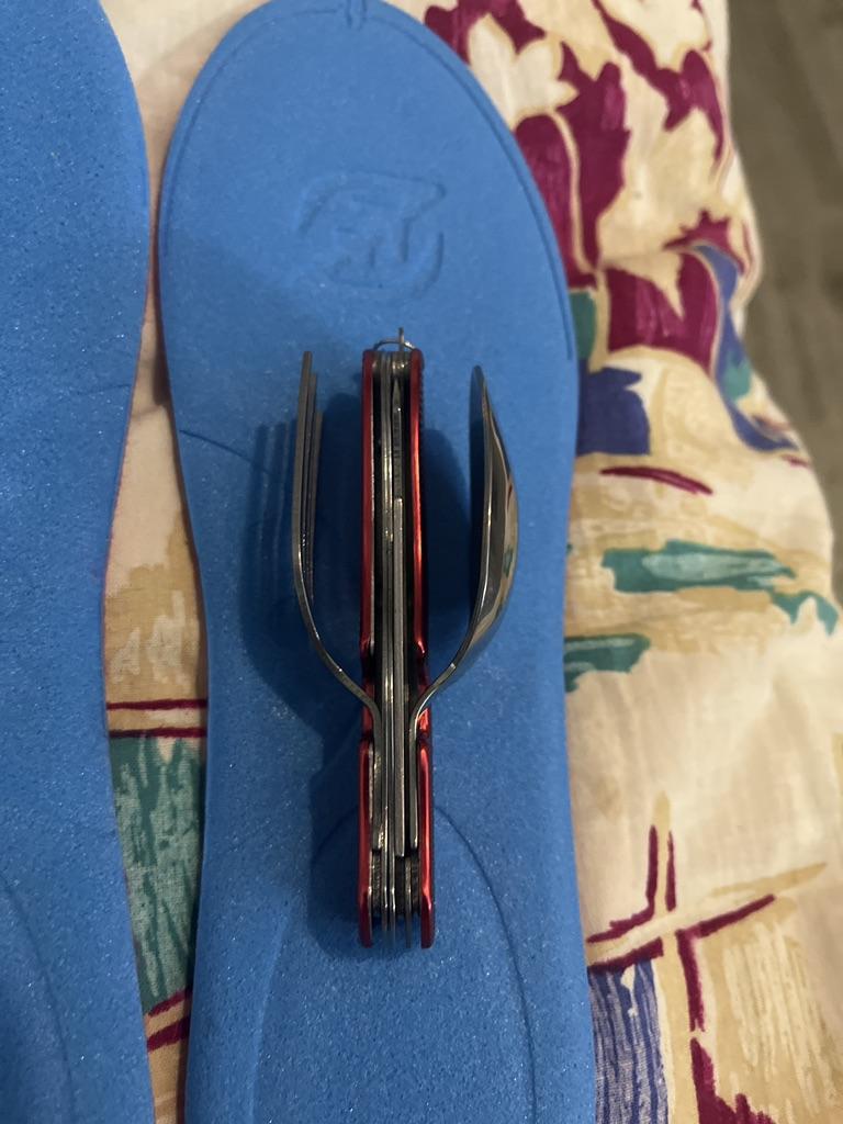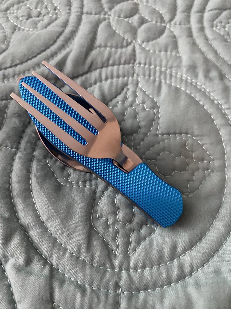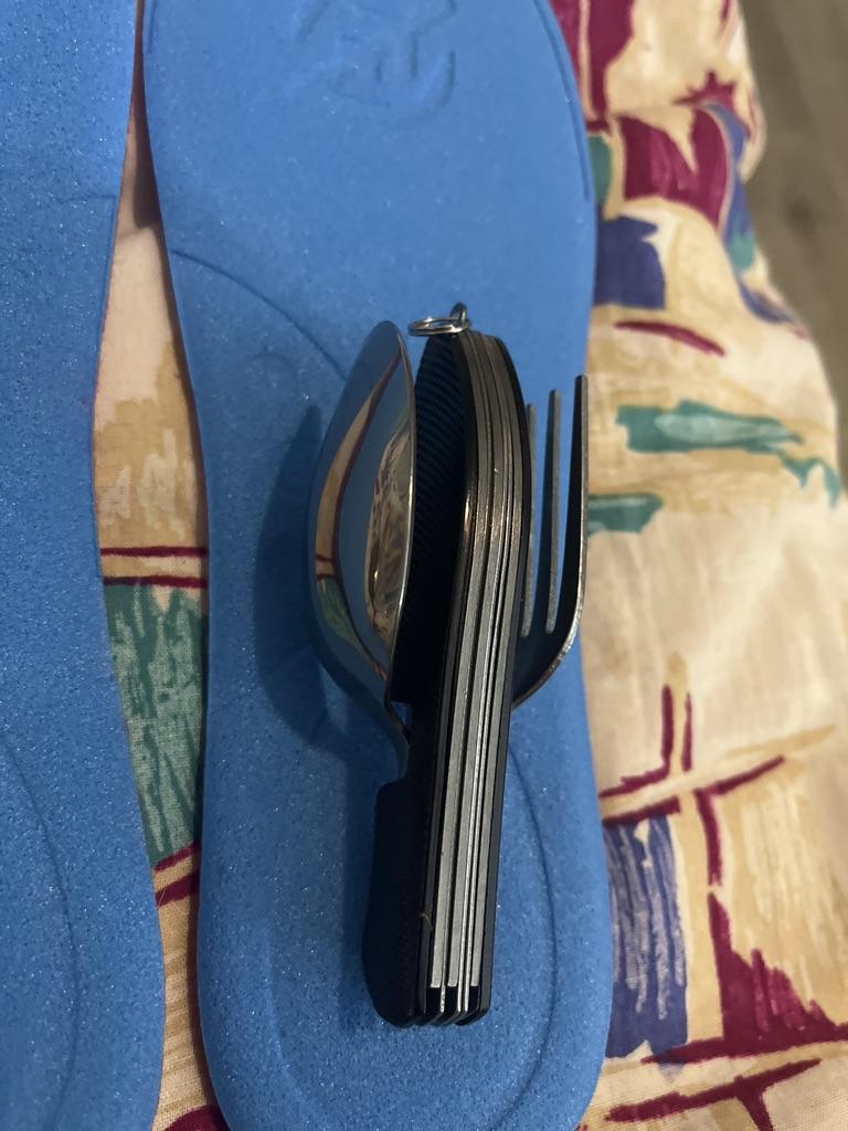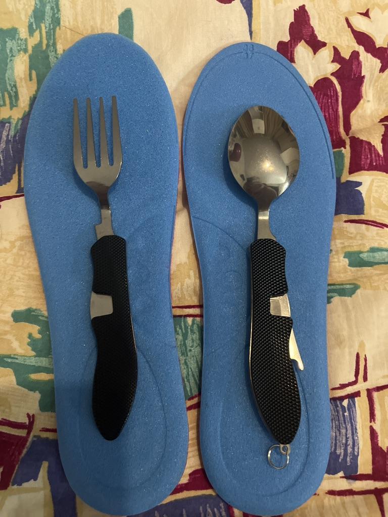 A very necessary device for the road and so: spoon, fork, bottle opener