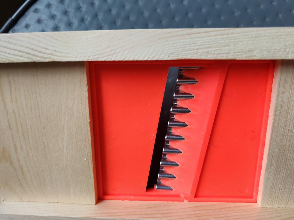 Larger than in the picture. We will use it. I hope I won't be disappointed. Thank you all. Very sharp, a holder is needed for hand safety.